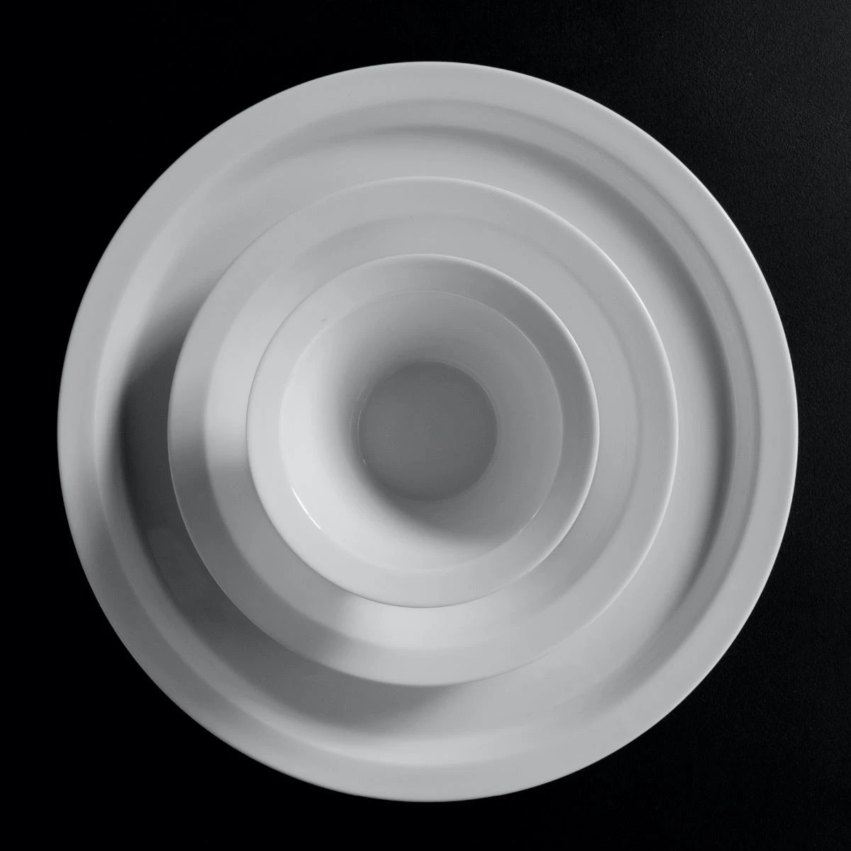 Bordi eccedenti, manici squadrati, tensioni fra le basi e il culmine, forme slanciate… è un curioso e bel servizio per la tavola questo pensato da Antonia Astori.