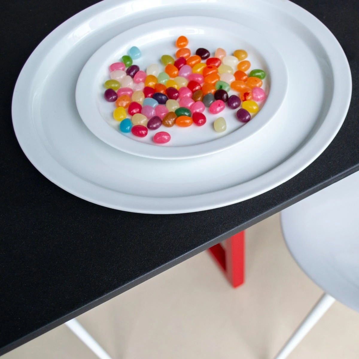 Bordi eccedenti, manici squadrati, tensioni fra le basi e il culmine, forme slanciate… è un curioso e bel servizio per la tavola questo pensato da Antonia Astori.