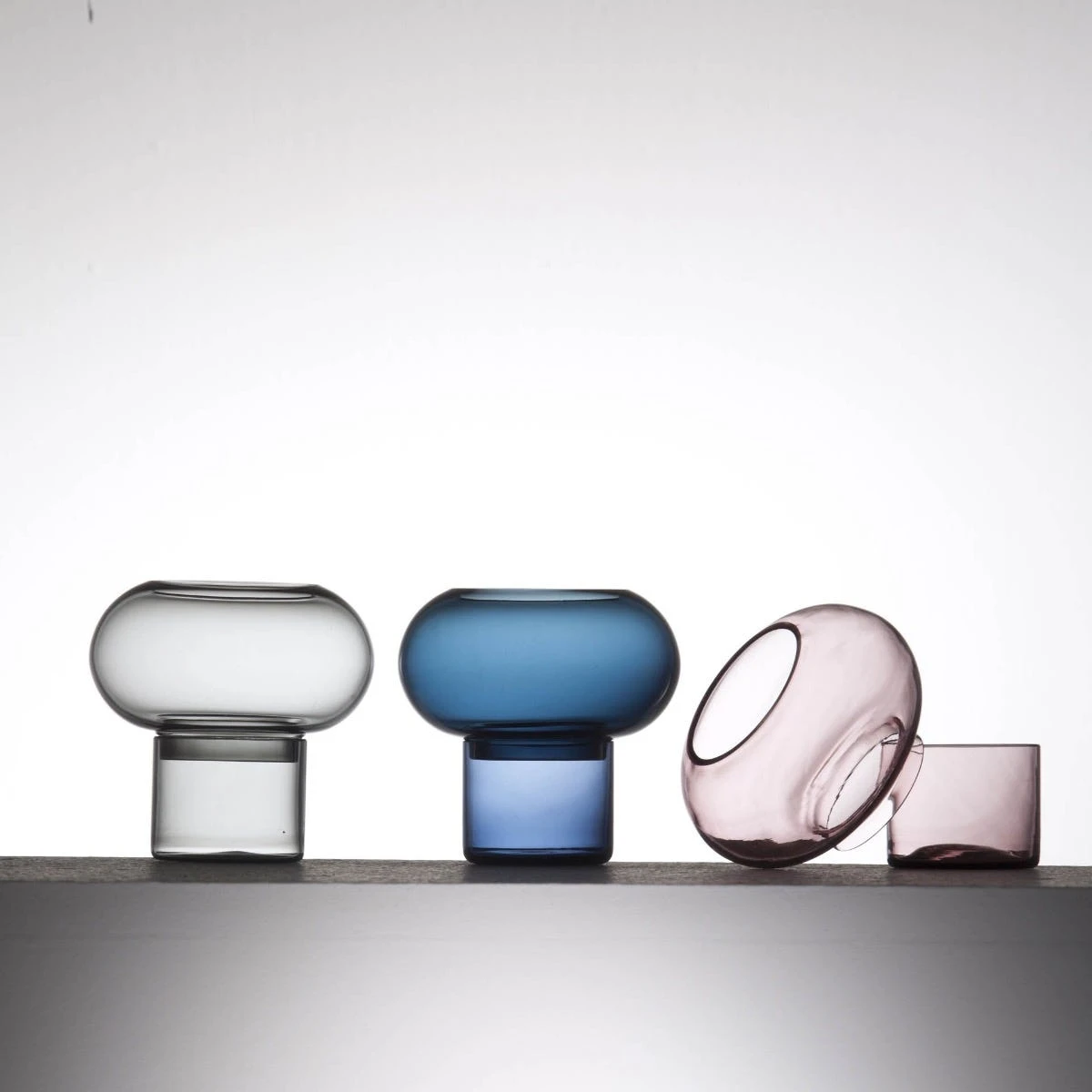 Bolla è un portacandele in vetro soffiato pensato come luce d’accento colorata e discreta. Si compone di due elementi: la base cilindrica che ospita la candela e l’ampio volume circolare che conferisce carattere e riconoscibilità all’oggetto. Il connubio tra la luce della candela e il vetro di murano garantisce una luminosità intensa e delicata al tempo stesso, sapientemente amplificato dalla grande “bolla” che incornicia e protegge la fiamma. Gli elementi sono separati permettendo così una facile accensione. Tre le raffinate nuances di colore proposte: grigio fumé, blu persia e vinaccia. “il progetto bolla nasce da una chiacchierata in Driade durante la quale ci veniva chiesto di riflettere attorno al tema della candela per un nuovo prodotto da includere nella collezione arte degli oggetti. Grazie all’ecletticità di questa collezione abbiamo cominciato a lavorare senza troppi vincoli, né condizionamenti di stile. L’oggetto a cui siamo approdati è perfettamente in linea coi progetti che ci piacciono di più: formalmente semplice e duraturo; elegante senza troppi fronzoli; giusto e misurato; artigianale ma tecnicamente risolto”. Lucidi Pevere