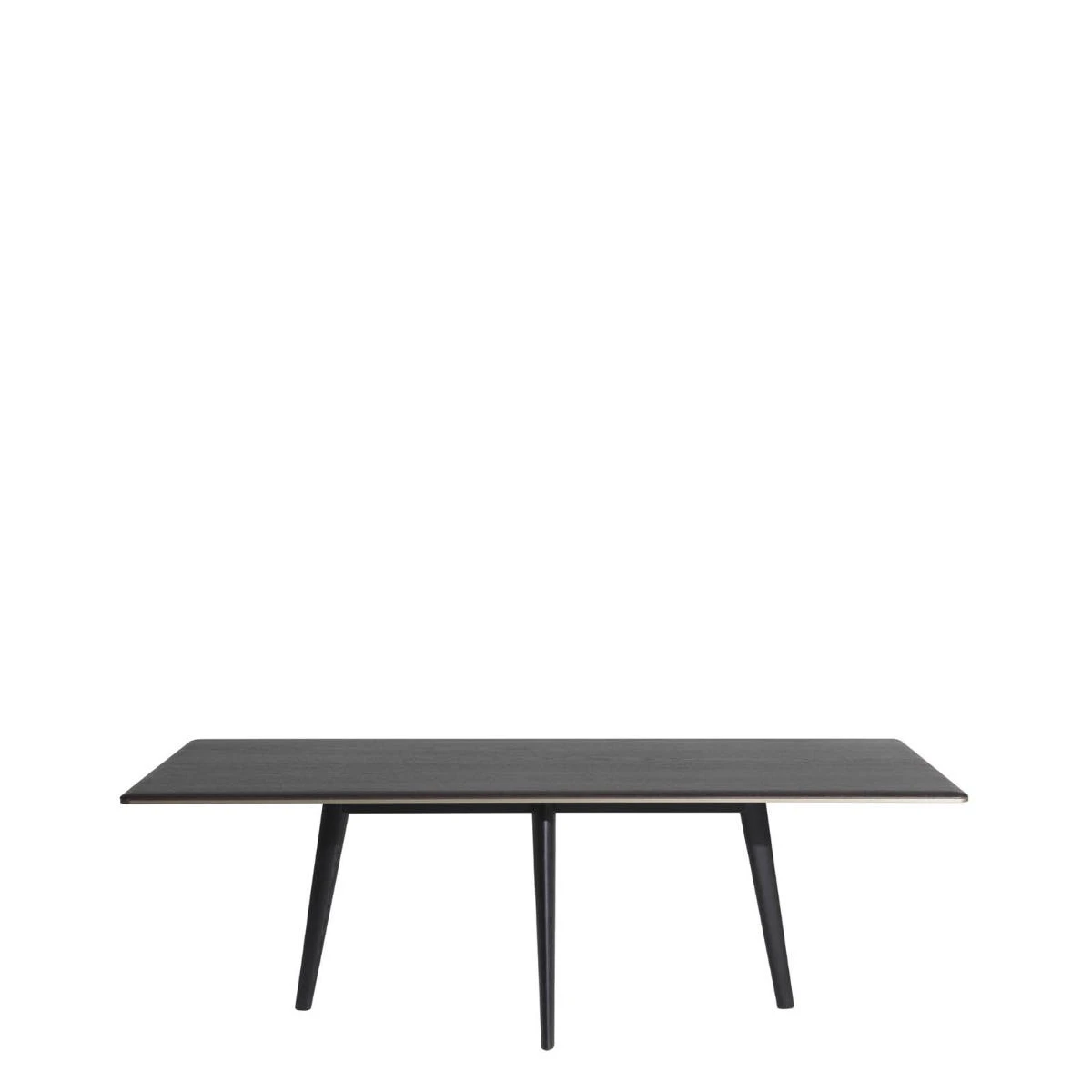 Struttura in tubolare metallico 60×60, gambe in massello di frassino ebanizzato, piano in legno. Uso solo interno.