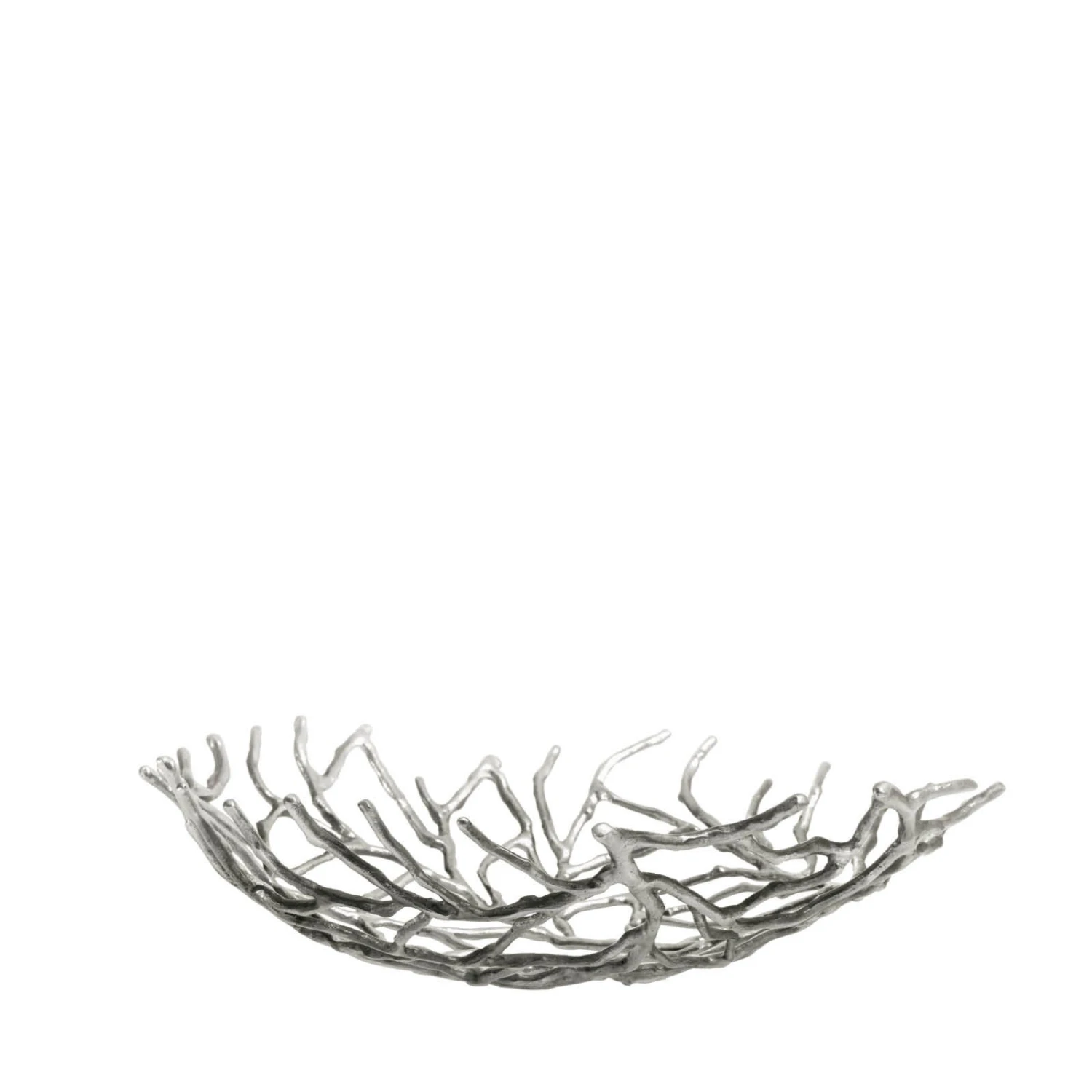 Un intreccio di fiori o foglie legate fra loro dai gambi e poi un groviglio ben ordinato di piccoli rami: sono centritavola preziosi, a forma di ciotola, questi creati da Mann Singh in ottone argentato.