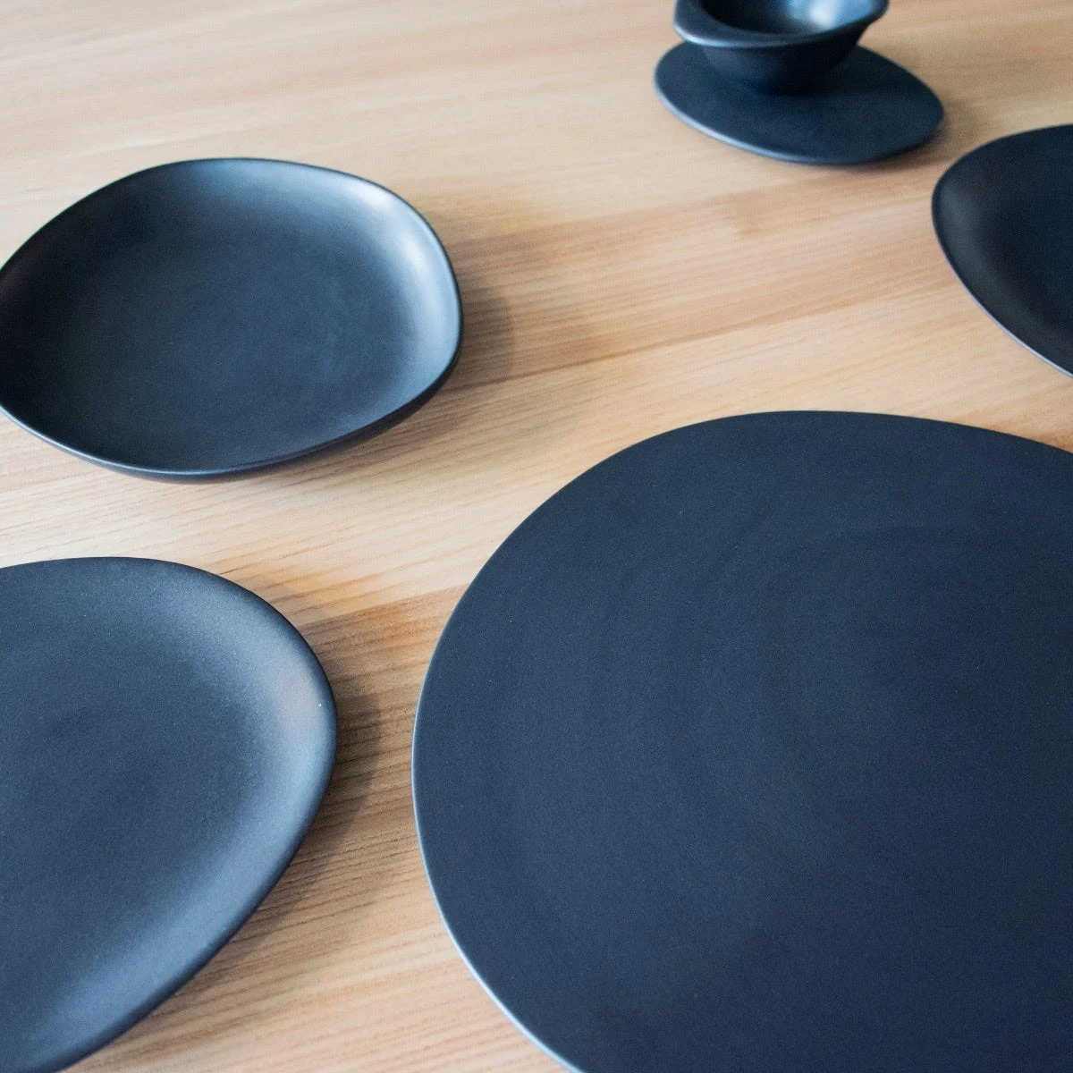 Irregolari di forme, come i sassi levigati dal mare, neri come la lava di vulcani: ecco i pezzi del servizio per la tavola disegnato da Laudani & Romanelli.