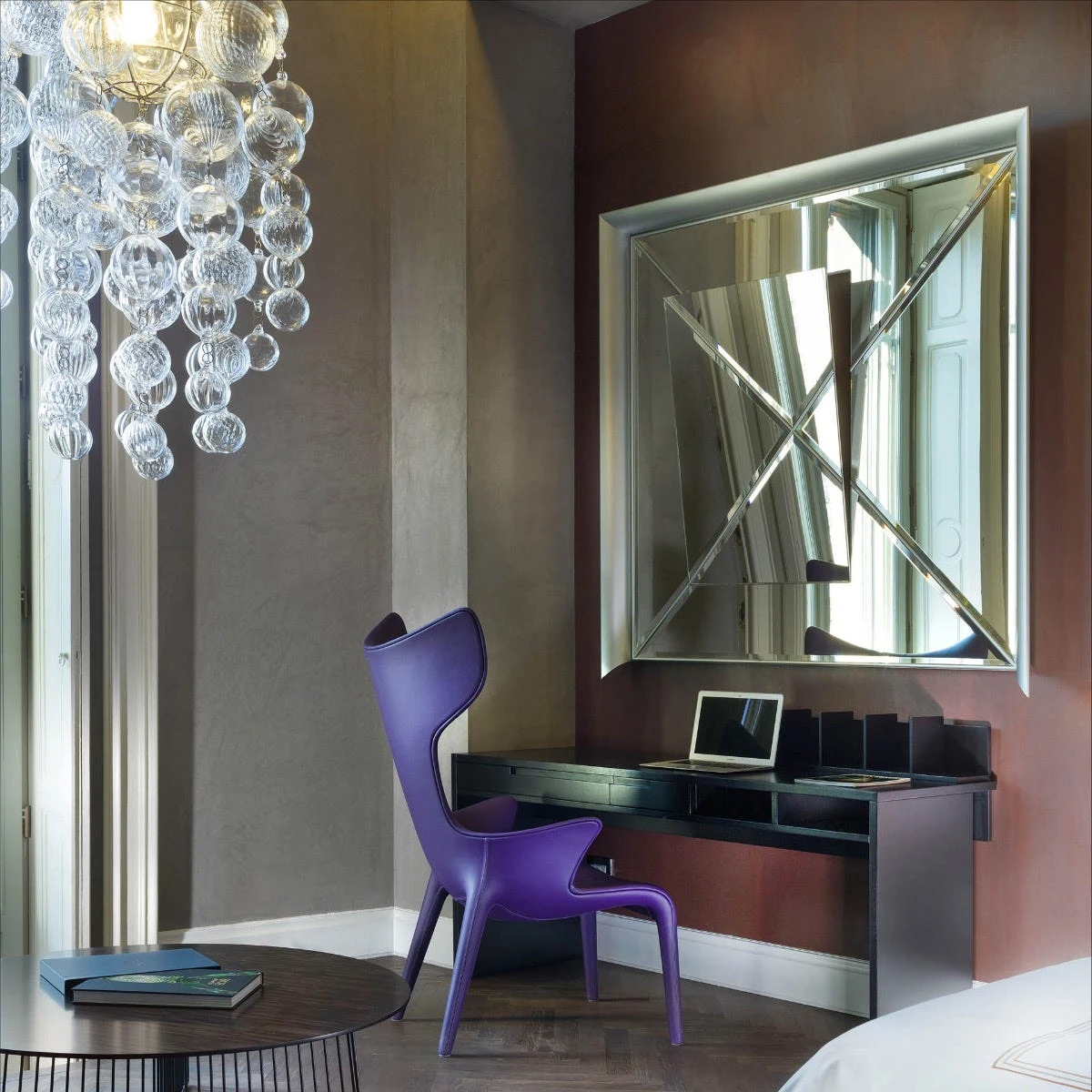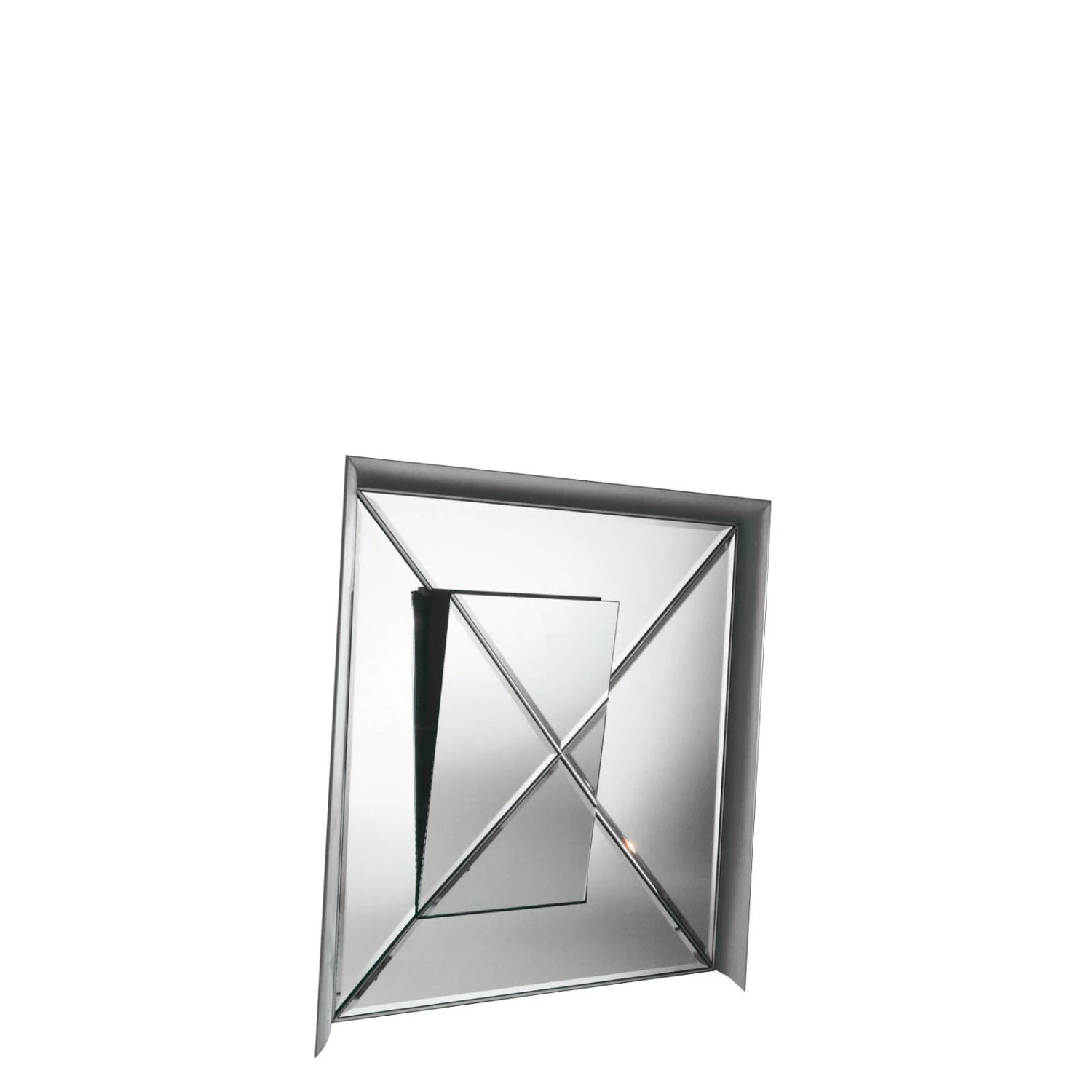 Basta un piano inclinato, ritagliato eccentrico in una superficie specchiata più grande, che a sua volta diventa cornice, per creare un effetto magico: l’immagine che ne risulta si frantuma e mette in evidenza dettagli nascosti.