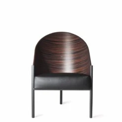 Driade riedita quest’anno la seduta lounge disegnata da Philipe Starck nel 1984 all’interno della celebre ed iconica serie Costes dalla quale prende le inconfondibili caratteristiche: una scocca in legno avvolgente e tre gambe fortemente inclinate. Una poltroncina dalla forte personalità , dalla seduta avvolgente e confortevole, che connota gli ambienti più eleganti sia in una dimensione domestica che in ambito hotellerie. Oltre ad essere riprodotta negli stessi materiali e rivestimenti di Costes, Pratfall viene riproposta in un’ampia gamma di nuove combinazioni e abbinamenti fra diverse scocche in multistrato curvato e rivestimenti in pelle.