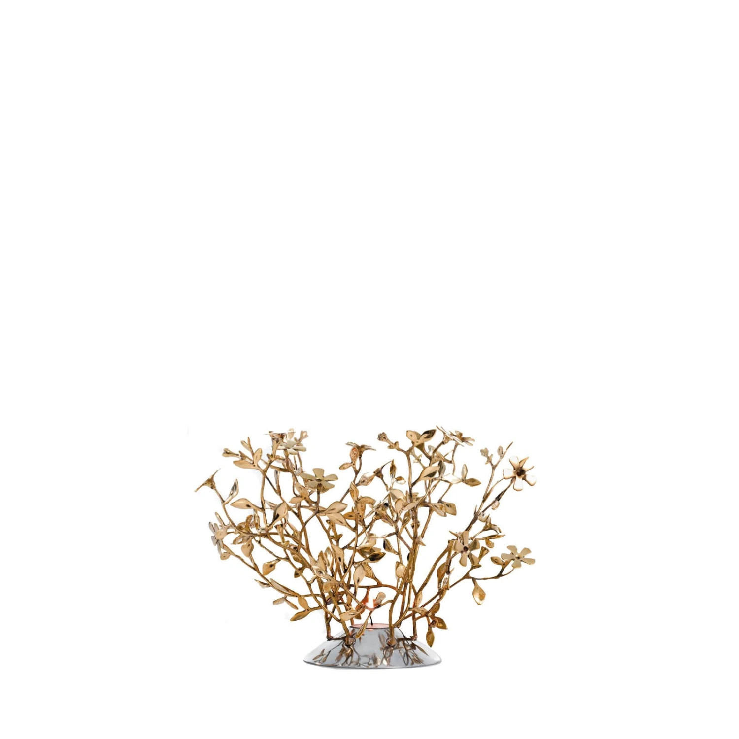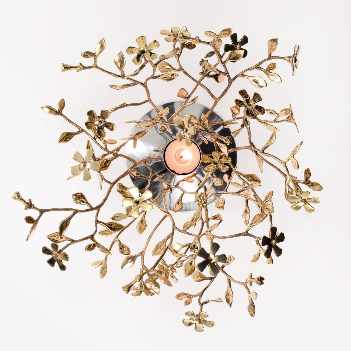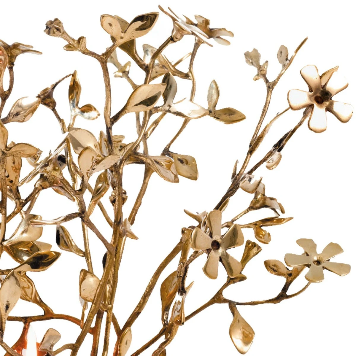 Una miniforesta di rami intricati e fioriti in cima, dove perdersi come nei racconti delle mille e una notte. O in un sogno, evocato dai riflessi dorati e dalle ombre gigantesche. Design Mann Singh.