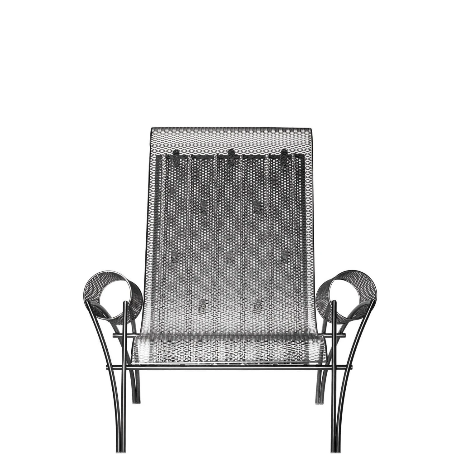 Maestro dell’architettura, il giapponese Ito ha proposto nel tempo poche straordinarie prove da designer. La poltrona Suki, progettata nel 1987, è una di queste: oggetto misterioso per l’adozione di un doppio filare di rete d’acciaio distanziato da numerose molle.