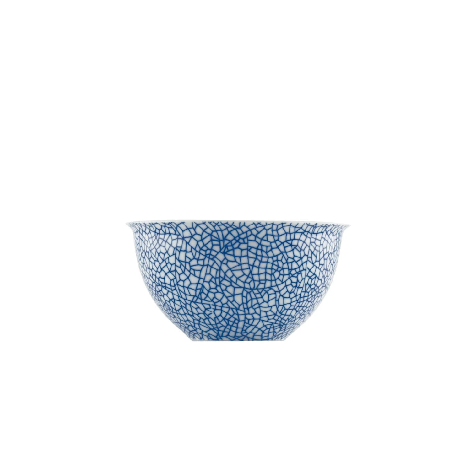 La decorazione blu delle ceramiche marocchine ha ispirato Paola Navone, chiamata a illustrare il servizio da tavola di Antonia Astori: minuscole volute, puntini piccoli e grandi, e il motivo del craquelé. Tutto rigorosamente blu.