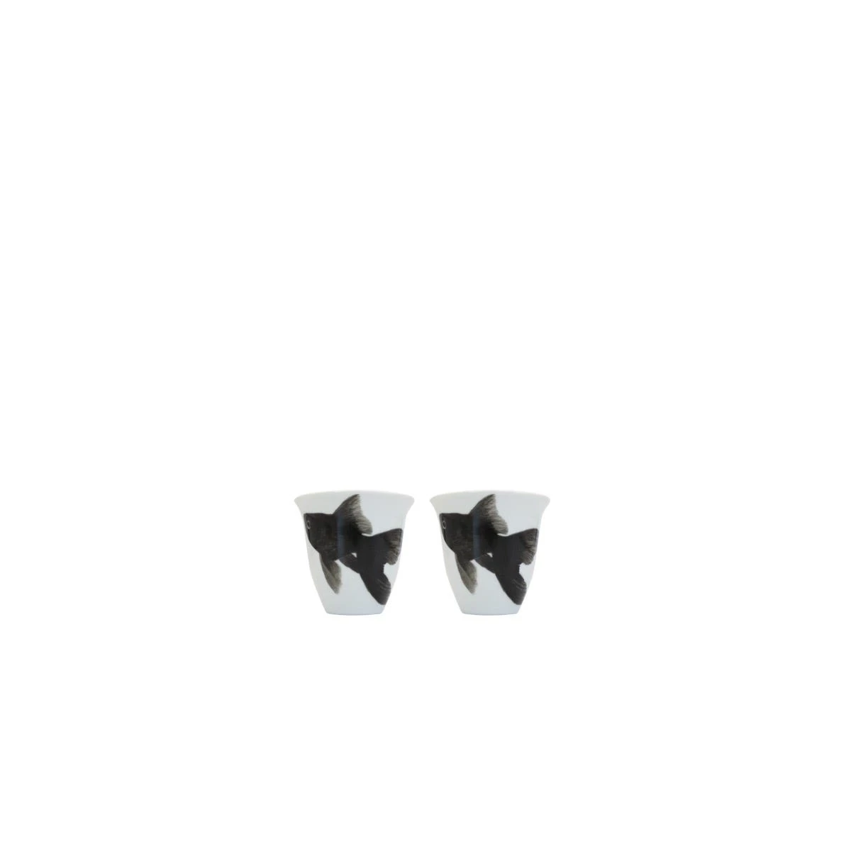 Guizzano nei piatti di Antonia Astori i pesci disegnati da Vittorio Locatelli. I fondi di colore sono diversi l’uno dall’altro, bianchi, neri, blu-oceano, completamente ricoperti di minuscoli pesci rossi o inquietanti pesci più grandi. Un servizio per la tavola che sarà come mettersi ad ammirare un acquario, affascinati dalla vita che vi si svolge, in silenzio.