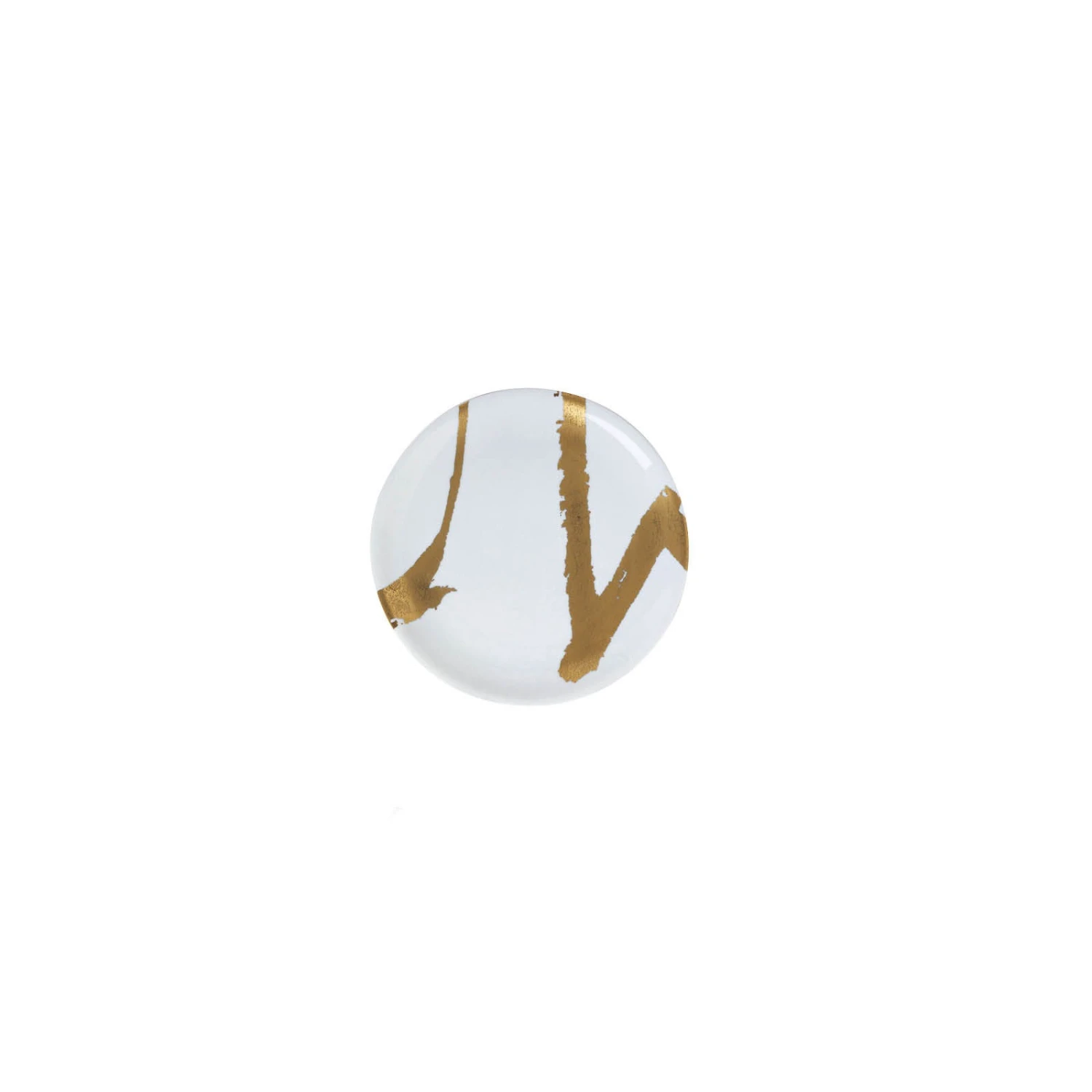 Set 6 piatti Ø 27,5 cm in porcellana bianca con decoro oro. Per comporre l’intera scritta è necessario acquistare anche “MOI I”.