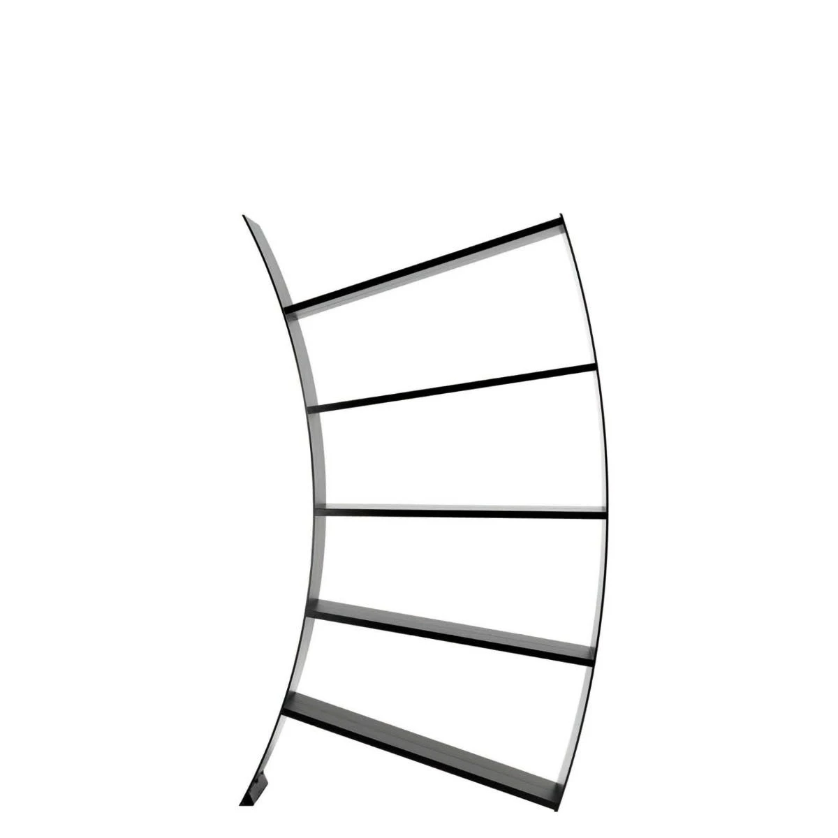 Virgo è una struttura “in tensione” che prende le sembianze tipologiche di una libreria, ma in realtà ci porta a ragionare sui rapporti tra superfici concave e superfici convesse, sull’energia della corda tesa nell’arco.La “composizione delle forze” è evidentemente espressa nell’equilibrio finale raggiunto. La forma sculturale assunta da Virgo ne consente l’uso non solo a parete, ma soprattutto al centro dello spazio.